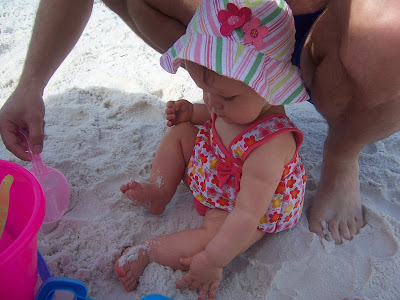 Tucker and Paw did some SERIOUS bonding at the beach this weekend. Their first adventures involved an arguement that went something like this, "Mama." "Paw Paw." "Mama." "Paw Paw." "Mama." "Paw Paw." (Tucker's in a phase for about a week now where she says Mama over and over and over and over again. EVERYTHING is Mama right now.) Tucker also shared with Paw her favorite game, aka shoving your face around. (See the video for illustration.) They also shared some excellent nap times together. :) A good time was had by ALL!!!
